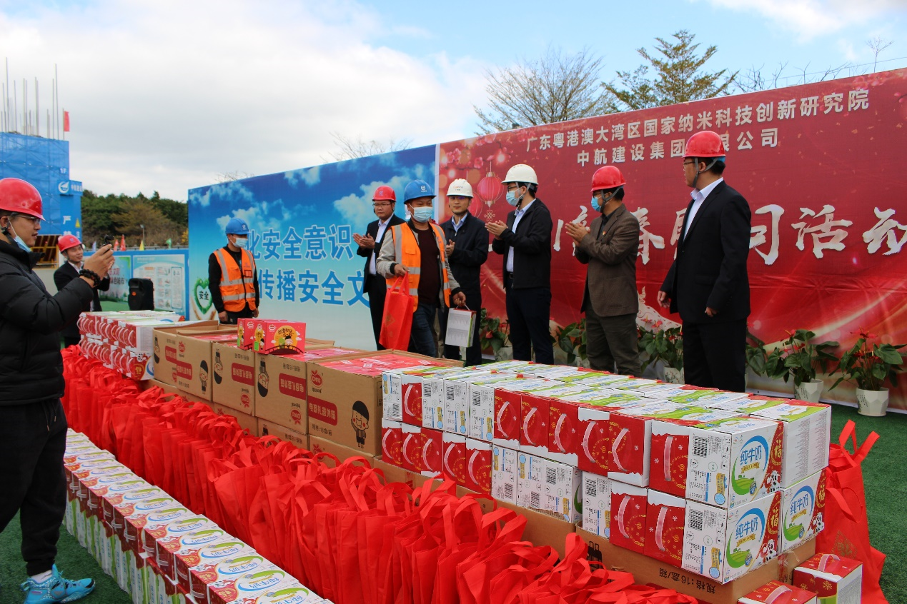 大年三十闹新春,生产一线迎新年。为响应地方政府“留穗过年”的号召,2021年2月11日,九游·J9站官方端入口-Jiuyou j9(中国)南方工程有限公司联合广州市黄埔区鱼珠街道办事处、广州纳米产业投资有限公司、广州珠江工程建设监理有限公司,组织开展“2021新春慰问活动”。
